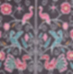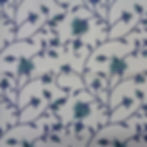Hand block printed table cloth with a pink, coral, teal and indigo floral design